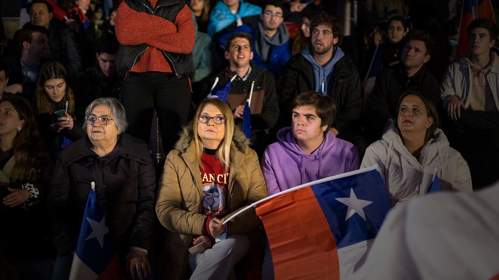 Hacia el final, suben al escenario algunos de los principales rostros de la campaña, como Carlo Siri, de No Más Víctimas; y María Fernanda Ulloa y Francisco Orrego, de Con mi Plata No, a quien el público recibe con un “se siente, se siente, Pancho presidente”. “Fueron cuatro años en los que nos fuimos quedando en silencio, en los que nos dejamos apabullar por un grupo de izquierda radical que se quiso imponer. Y eso, muchachos, no lo podemos volver a aceptar”, dice Orrego.