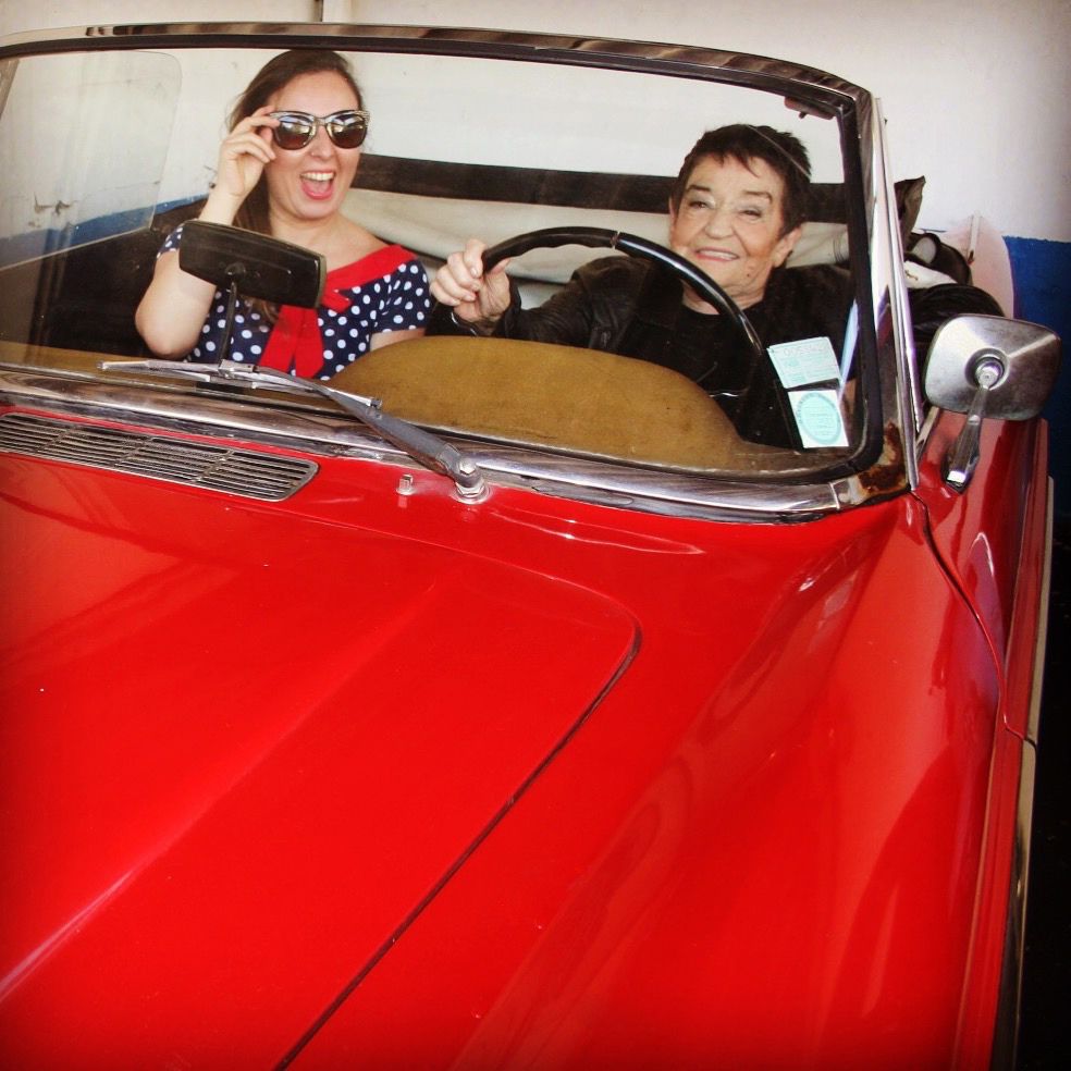 Meses más tarde, produjimos junto a su manager un concierto para conmemorar sus 60 años artísticos. Fue una autoproducción que me permitió conocerla desde otra perspectiva: si había algo sobresaliente en Cecilia era su buena disposición y buen trato, algo impagable al momento de trabajar en equipo. El Epoc que padecía la había vuelto oxígeno dependiente, necesitaba ayuda para desplazarse y sufría de dolores en la espalda. Con todo eso lidiaba Cecilia en su cotidianeidad, pero si se trataba de volver al escenario, ninguna enfermedad existía para ella. Con Yas montamos un concierto memorable en el Club Chocolate, que difundimos con fotografías que nosotras produjimos: como a Cecilia le gustaban los autos y existía una foto de ella sobre un vehículo cuando era joven, replicamos ese concepto para la fecha. Conseguí que me prestaran autos antiguos para hacerle fotos. El día de la sesión, maquillé a Cecilia y Yas se remontó a su antigua profesión de fotógrafa para generar las imágenes que usaríamos en la difusión del concierto. Fue cerca de un puente de la calle Ramón Cruz, en la Villa Frei. Yas se estacionó y bajó del auto para recibir a Omar y Reinaldo Riquelme, dueños de un bello Peugeot 404, color cereza, del año 74. Cecilia, que estaba sentada en el copiloto con el vidrio abajo, aprovechó que Yas estaba lejos para pedirme una calada de cigarro. Me dio risa, “no podría darte cigarro Cecilia”, le dije, y no insistió, pero su actitud rebelde me quedó grabada a fuego. Ese día también hicimos fotos en unos autos que estaban en Barrio Italia. Cecilia posó junto a un necesaire que era de mi abuela, y nos fotografiamos juntas dentro de un auto descapotable, como si estuviéramos viajando por una carretera.
